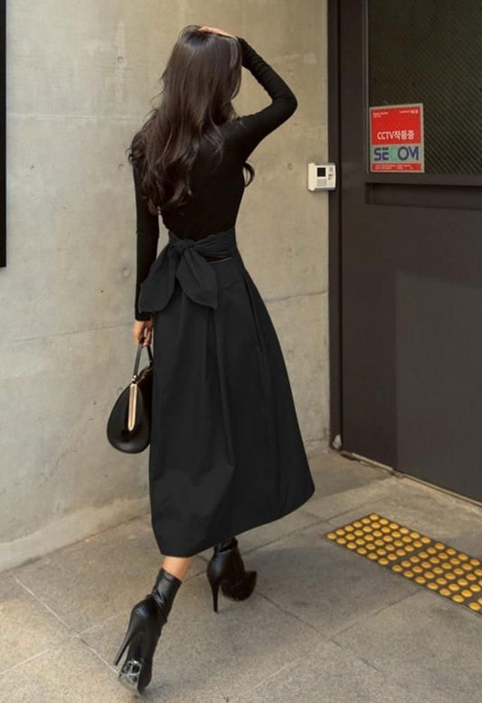 Back Bow Formal Pleated Skirt