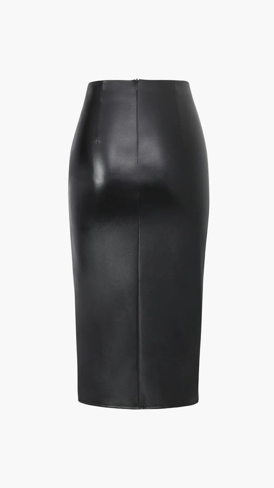 Black Colored Premium Tailored V - Cut Midi Western Wear Skirt