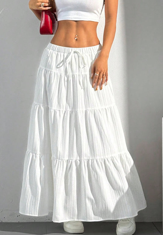 Women Solid white High Waist Tie Ruffled Hem Maxi Skirt