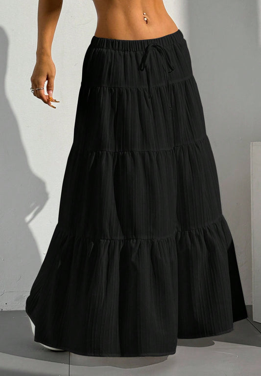 Women Solid black High Waist Tie Ruffled Hem Maxi Skirt