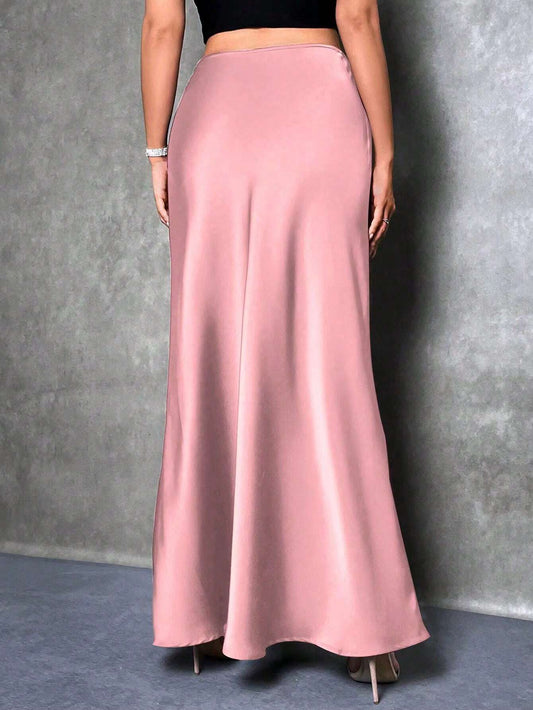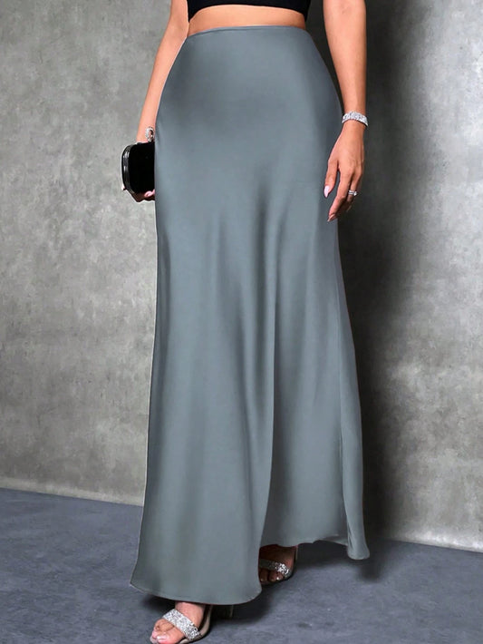 Women's Satin Skirt, Versatile Fish Tail Hem Mid-Length Skirt, Everyday Wear Skirt, Bossy Office Elegant Skirt