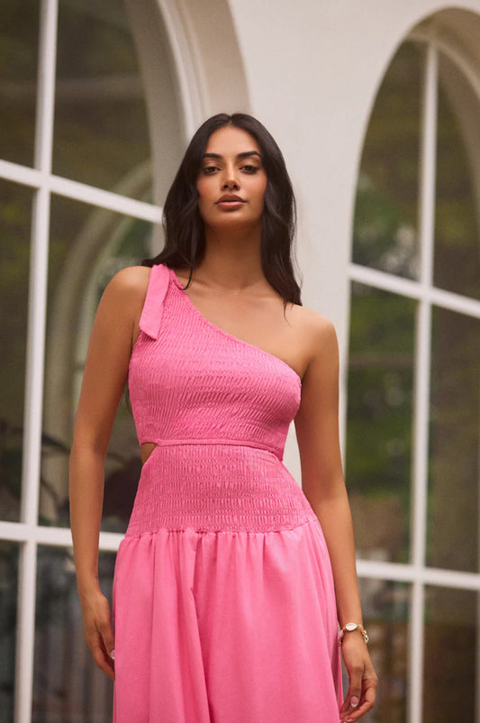 Elegant Flared Sleeveless Long Dress – Soft Pink Perfection