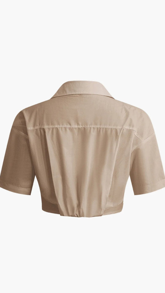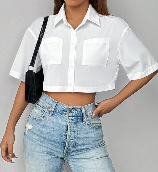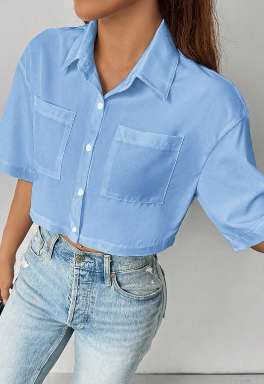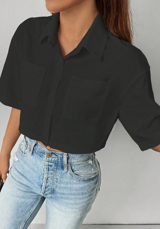 Plain Shirt Collar Front Button Short Sleeve Pocket Minimalist Casual shirt