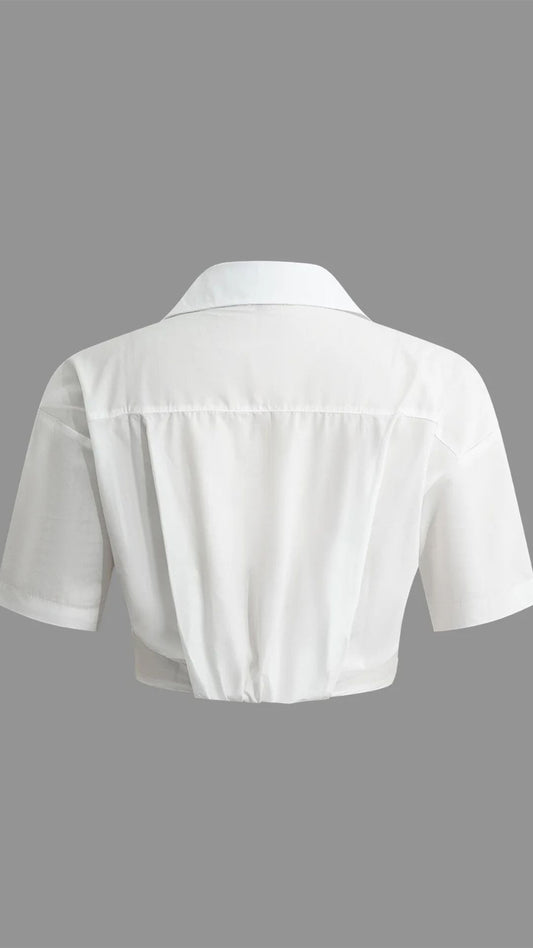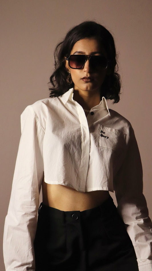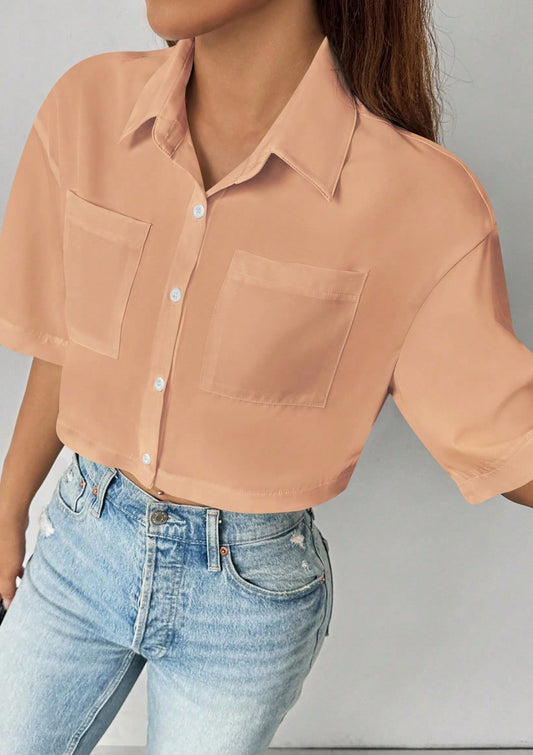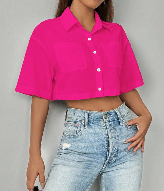 Pink Crop Shirt with Drop Shoulder Sleeves