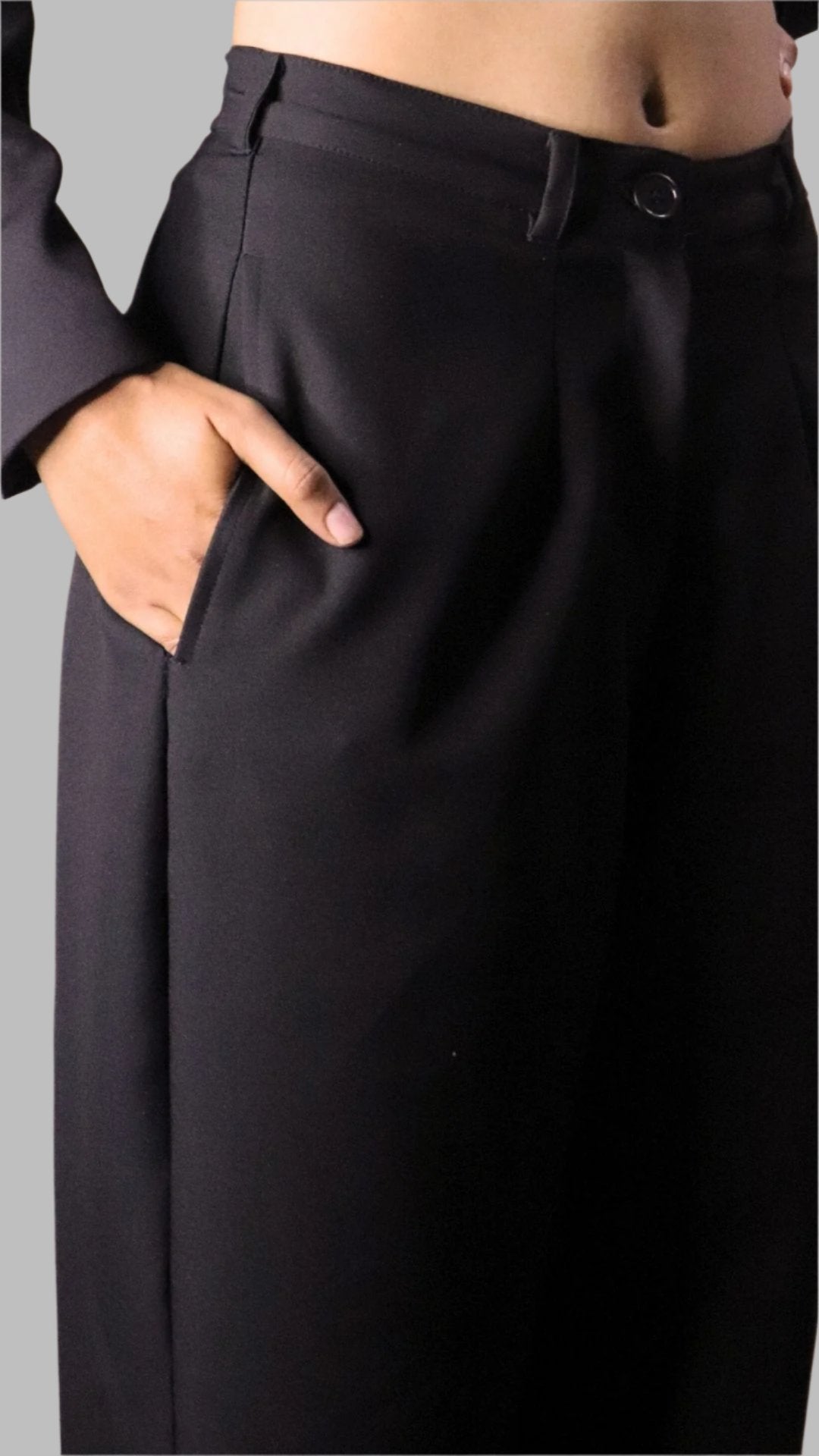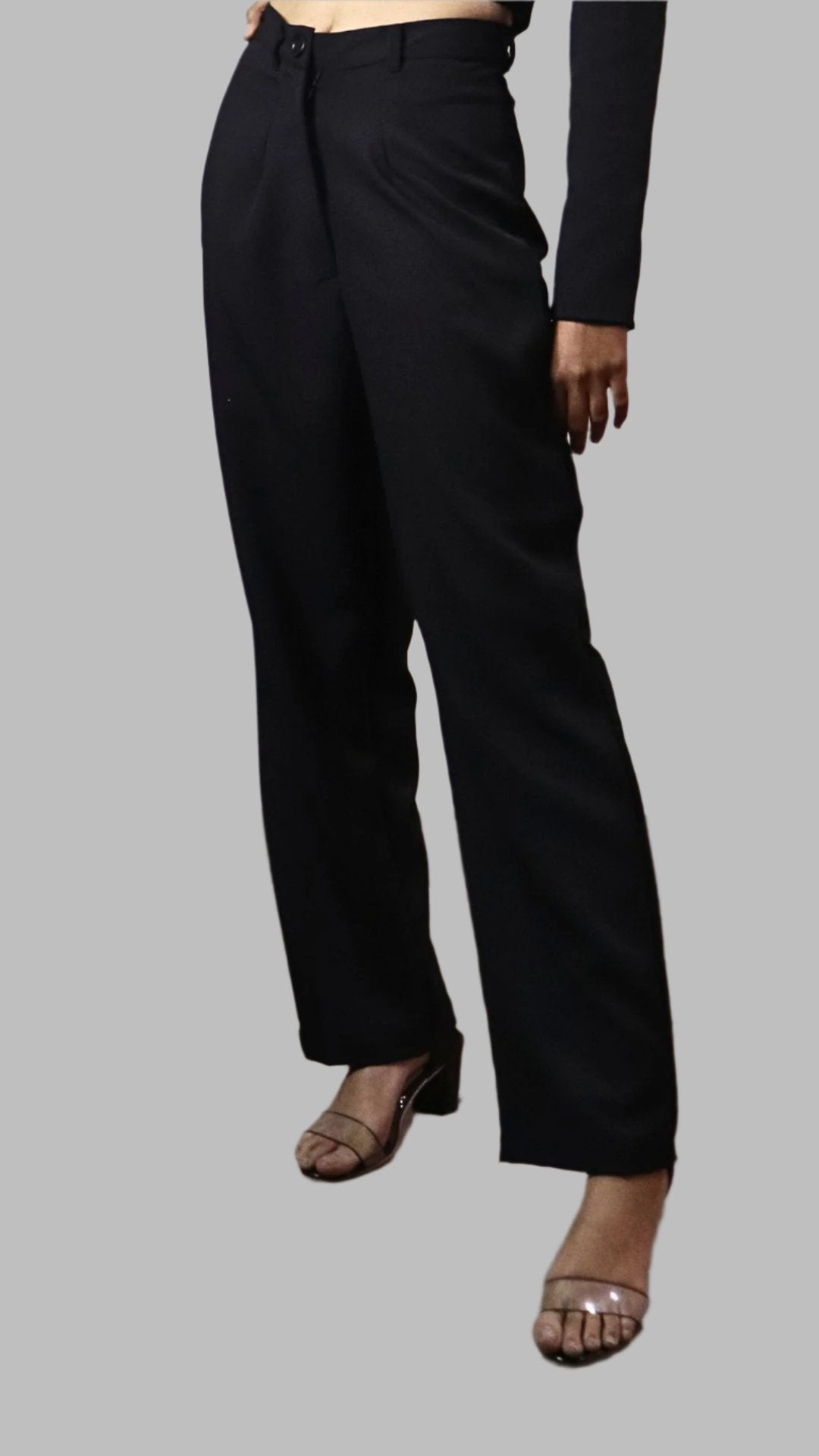 Step out in style with our High-Waisted Straight-Fit Black Pants, designed for the modern woman who values both comfort and sophistication.