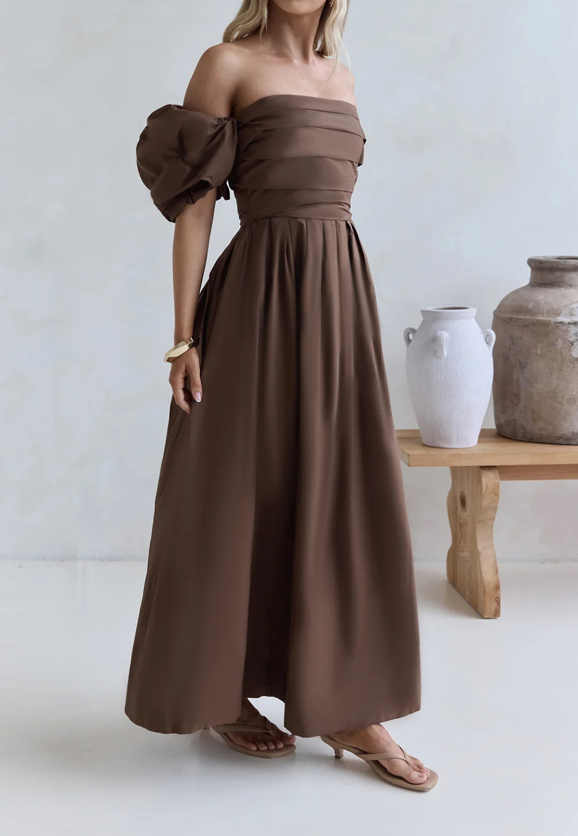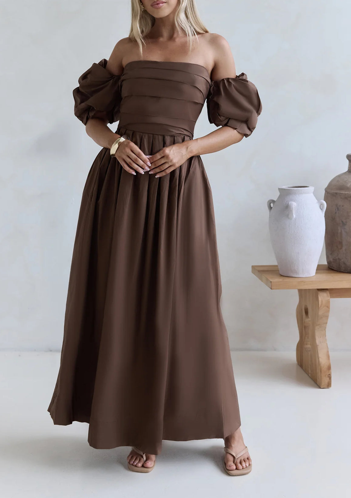 Get ready to feel like you're floating on air in our Puffy Balloon white Dress! Made with soft poplin cotton, this maxi dress boasts an off shoulder puff sleeve and pleated bust for a playful touch. The flared hem and full lining add to the comfort and flow of this unique and quirky piece. Perfect for those who don't take themselves too seriously!